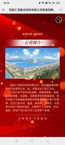 冠县仁泽复合材料有限公司(原山东星瀚材料股份有限公司),注册资本20000万元,成立于2006年3月8日,目前公司的主要产品:热镀铝锌硅卷板、热镀锌卷板、彩图卷板、瓦楞板等,该公司产品已经出口至100多个国家和地区,国际信誉佳,有自己的物流公司,这样让公司有了***,实现物流自主。